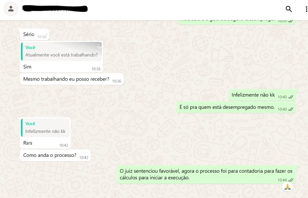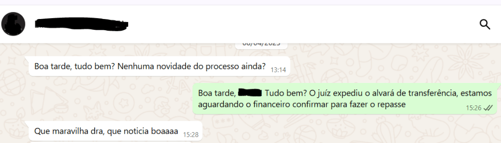 Cliente satisfeita com a sentença e com o alvará de transferência dos valores.