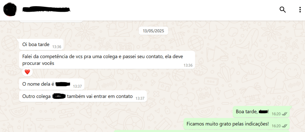 Cliente satisfeita com o resultado do processo. Com isso, nos indicou para os amigos.